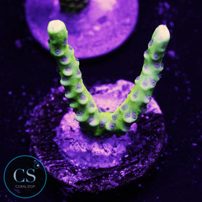 Anacropora Corals are a unique and striking species known for their delicate, branching structures and vibrant colors. Their branches are often finer and more delicate than other SPS corals, resembling a tree-like formation with polyps that give them a soft, bushy appearance. Anacropora corals come in shades of green, yellow, blue, and purple, adding stunning contrast to a reef tank.