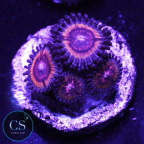 Zoanthids do well under low to moderate lighting, and they prefer low to medium water flow, which helps keep their polyps extended and healthy. They are primarily photosynthetic but will benefit from occasional feedings of small plankton or coral foods to support optimal growth and color.