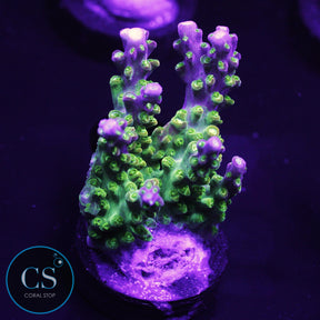 Acropora Corals are among the most colorful and fast-growing SPS (Small Polyp Stony) corals, prized for their intricate, branching structures and vibrant hues. These corals can display a variety of colors, from greens and blues to pinks, purples, and yellows. Acropora species are known for their ability to grow quickly, forming beautiful, dense colonies that can become a stunning focal point in any reef aquarium.