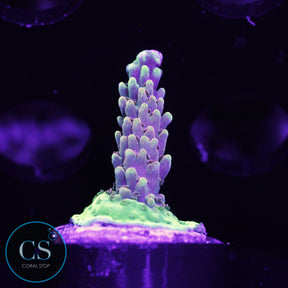 Acropora Corals are among the most colorful and fast-growing SPS (Small Polyp Stony) corals, prized for their intricate, branching structures and vibrant hues. These corals can display a variety of colors, from greens and blues to pinks, purples, and yellows. Acropora species are known for their ability to grow quickly, forming beautiful, dense colonies that can become a stunning focal point in any reef aquarium.