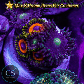 Zoanthids do well under low to moderate lighting, and they prefer low to medium water flow, which helps keep their polyps extended and healthy. They are primarily photosynthetic but will benefit from occasional feedings of small plankton or coral foods to support optimal growth and color.