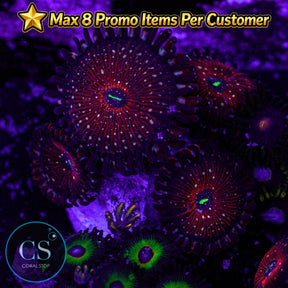 Zoanthids do well under low to moderate lighting, and they prefer low to medium water flow, which helps keep their polyps extended and healthy. They are primarily photosynthetic but will benefit from occasional feedings of small plankton or coral foods to support optimal growth and color.