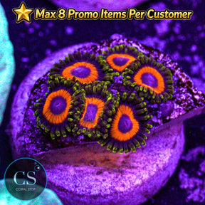 Zoanthids do well under low to moderate lighting, and they prefer low to medium water flow, which helps keep their polyps extended and healthy. They are primarily photosynthetic but will benefit from occasional feedings of small plankton or coral foods to support optimal growth and color.